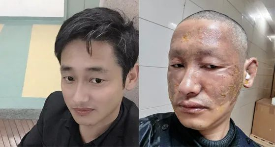 头发、眉毛被烧没近乎“毁容”