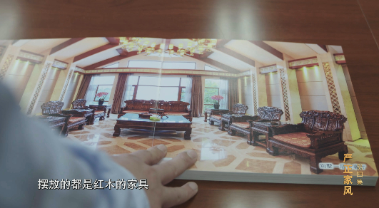 一层会客厅摆放着昂贵的红木家具。