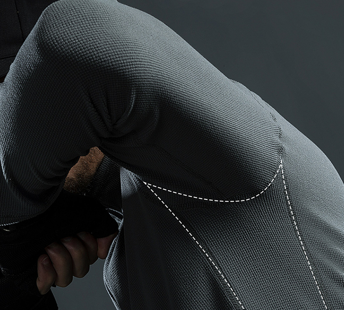 走线也是精心排布,留出了运动会拉扯到的腋下范围,不仅版型更好看,活动也更灵活。