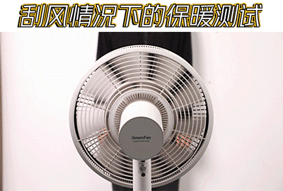 为了贴近实际使用的状况,我们又模拟刮风情况下的保暖测试。