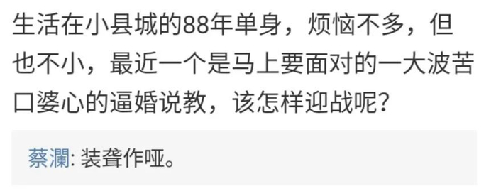 “面对一大堆苦口婆心的逼婚说教,该如何迎战?”