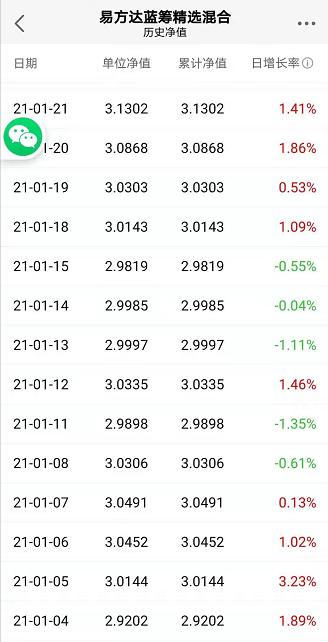 那天——好像是1月20日或是21日,大家看着易方达蓝筹(指张坤管理的基金“易方达蓝筹精选混合”)的收益从平台预估的负数变为了正数,然后一群人个个高呼“坤哥厉害”,于是气氛起来了,一帮人说要给坤哥打Call什么的。
