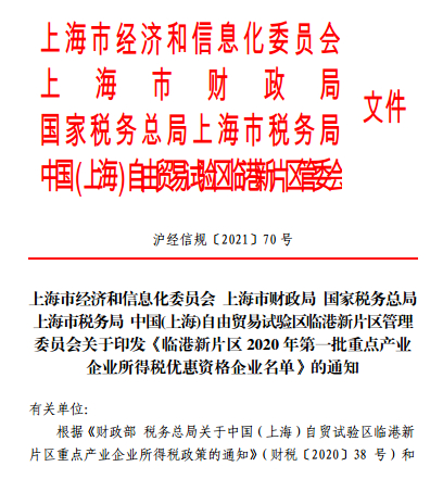 这也标志着,这一税收优惠政策已经正式落地临港新片区。