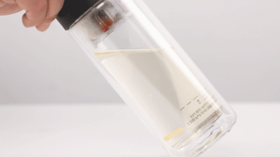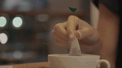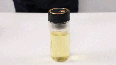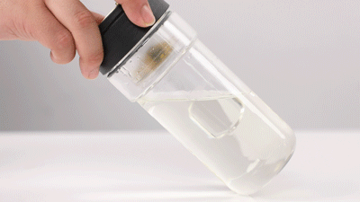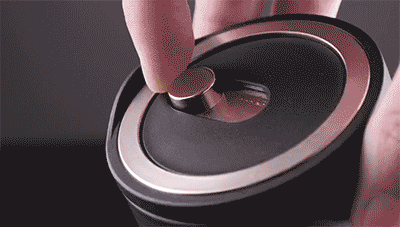 当你准备开始泡茶时,只要推一下杯盖上的金色按钮,茶仓就会坠落入水,开始和热水开始充分接触~