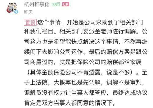 对此,1月25日,《和事佬》官方号出面回应称,节目组是应女孩生前所在公司的要求,希望尽快解决纠纷而进行调解,闹下去只会影响公司运作,最终达成协议肯定是建立在双方当事人都同意的条件下。