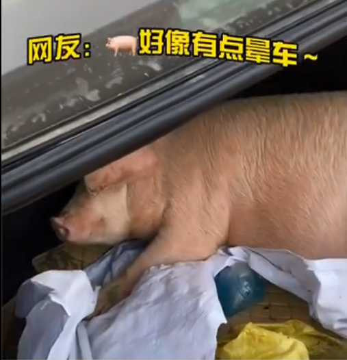 视频中,300斤的猪躺在后备箱里,画面十分喜感。网友:不愧是爸妈安排的后备箱!(济南时报)