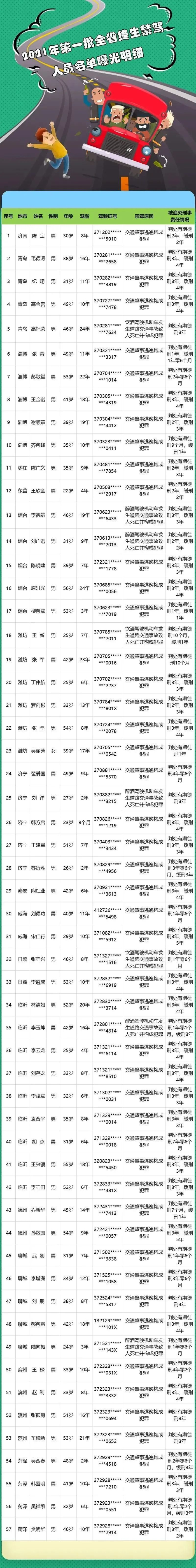 27日,山东省公安厅交通管理局向社会公开发布今年第一批终生禁驾名单,57人“榜上有名”。(山东高速交警)