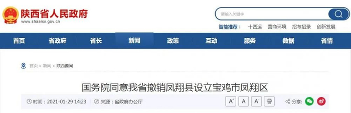 原标题:国务院同意我省撤销凤翔县设立宝鸡市凤翔区
