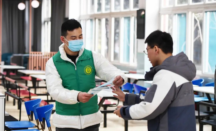 上理工留校学子作为志愿者,在宿舍楼、食堂,为同学们提供力所能及的服务。