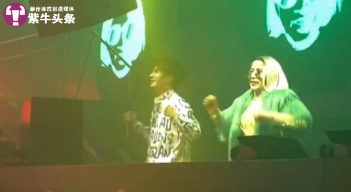 “金发奶奶”在进行打碟表演