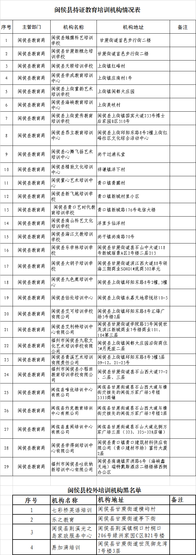 福州市校外培训机构“黑白名单”