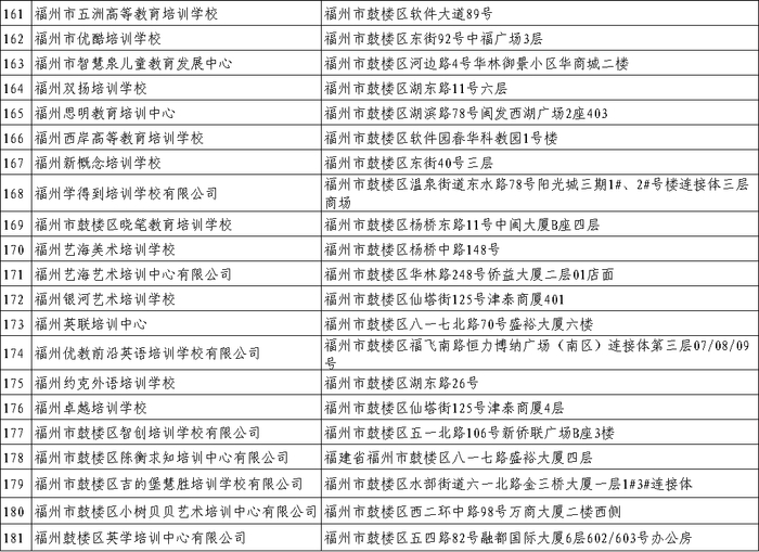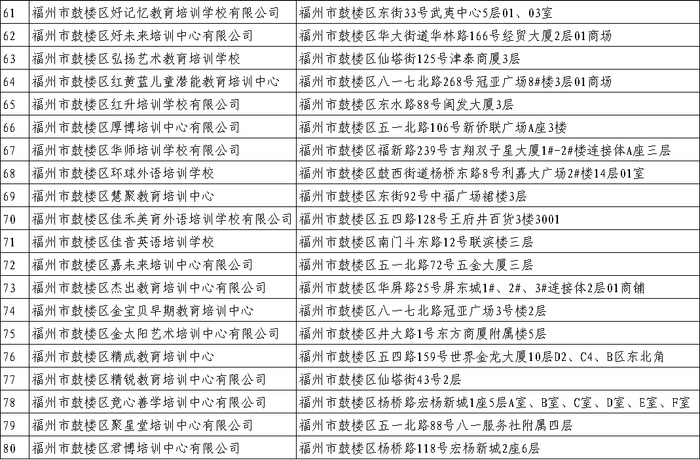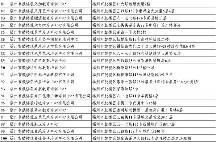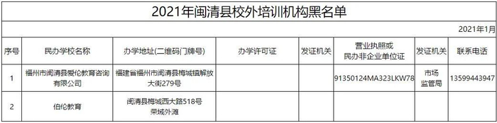 最新!福州校外培训机构黑白名单全发布