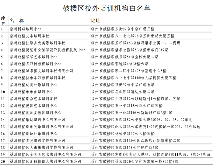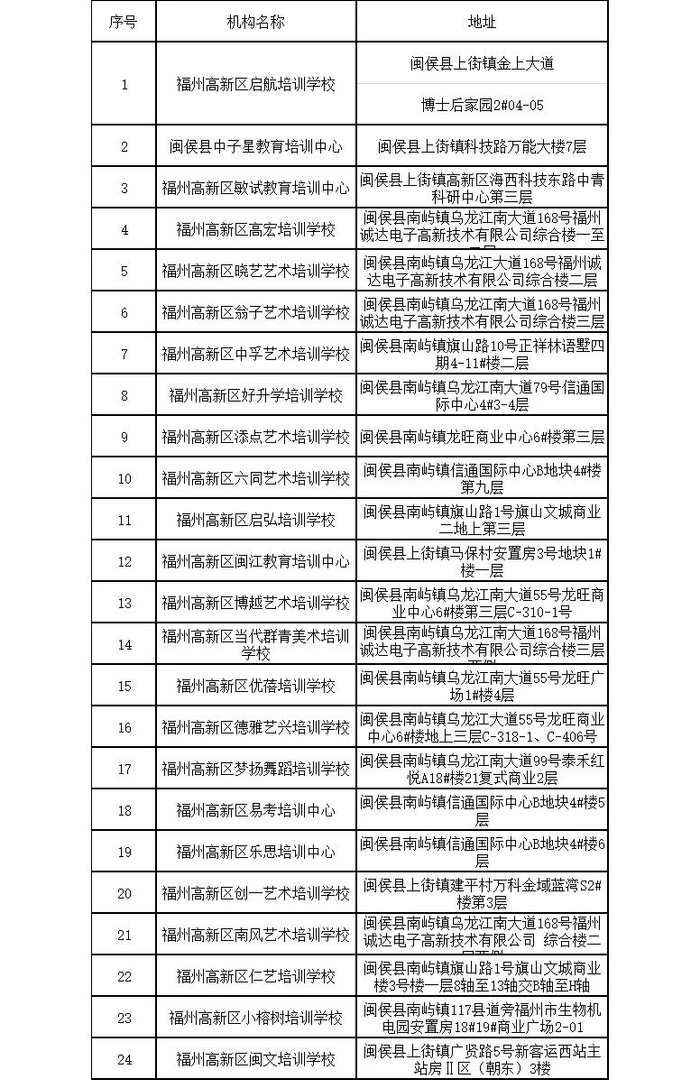 原标题:最新!福州校外培训机构黑白名单全发布
