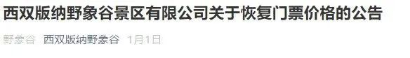 西双版纳野象谷景区门票价格恢复至全票价60元/人。