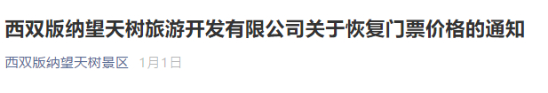 大理旅游集团旗下涉及的各A级景区于 2021年1月11日起恢复门票挂牌价,具体如下: