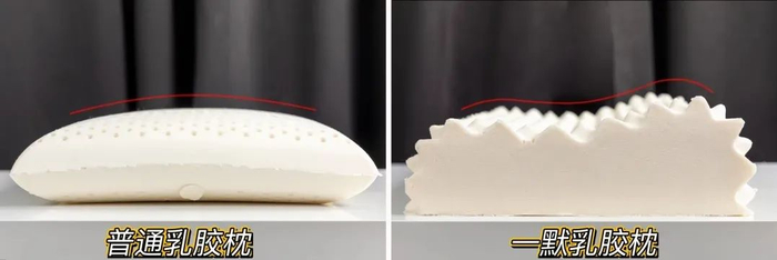 而普通乳胶枕的形状没有起伏,在一默乳胶枕的对比下显得尤为明显。