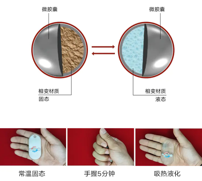 采用美国航空航天局(NASA)宇航服控温技术,不插电,材料会根据周围温度变化调整,只靠自身材质就能吸热、放热。