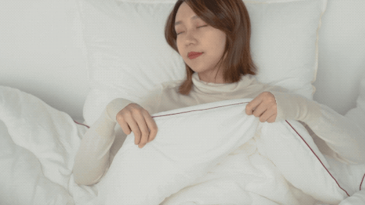 它可以根据你的体温变化,把被子的温度控制在28℃-32℃,确保你不会被热醒或者冻醒。