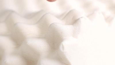 这款乳胶枕头上设计了200个3D按摩颗粒,看起来像一片起伏的小山丘。