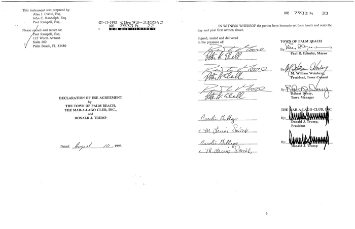 特朗普和棕榈滩镇1993年签署的协议。GJ图