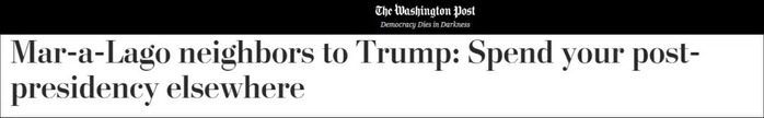 《华盛顿邮报》报道,2020年12月,海湖庄园附近居民们向棕榈滩镇镇政府和白宫特勤局发了一封请求信,希望特朗普“不要成为他们的邻居。”
