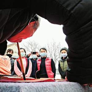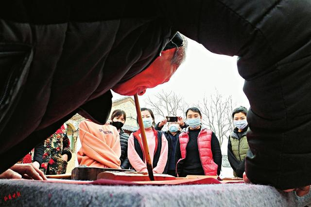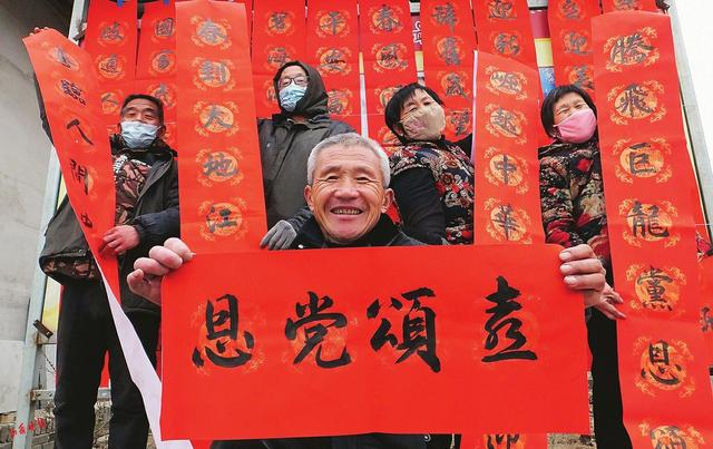 1.李天保口书书写春联,引得乡亲们一片叫好。
