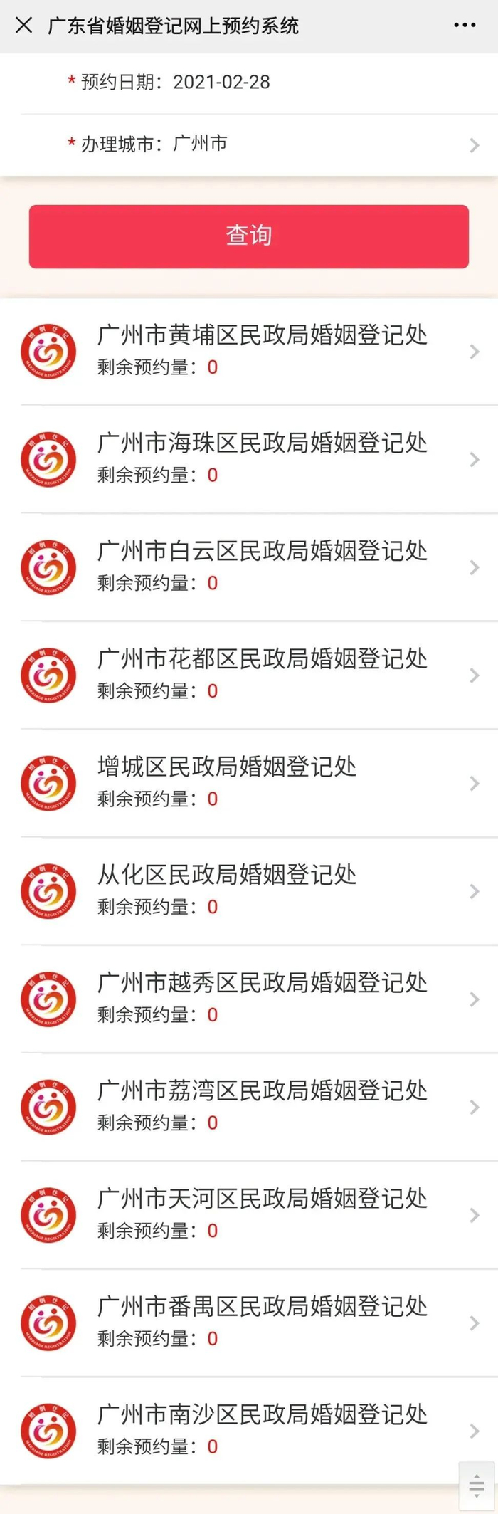 据了解,广州市婚姻登记机关在周一至周五、周六上午和元旦节、“五一”劳动节、中秋节和国庆节当天对外提供婚姻登记服务。例如,网传截图中的2月28日为星期日,当天婚姻登记机关并不提供婚姻登记服务。