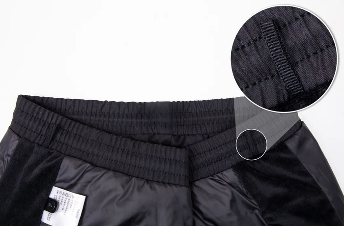 翻开内层,还能看到四周的裤缝处有一层柔软的婴儿绒面料,抵挡寒风。