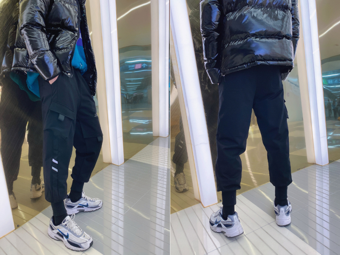 3、时髦裤型,百搭帅气,男女同款,好看又好穿。