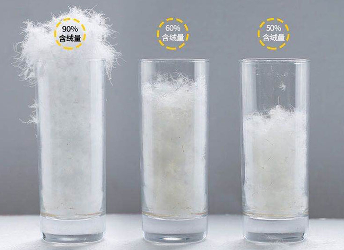与50%、60%含绒量相比,90%的白鸭绒更加蓬松,这样中间的空气感就不容易和冷空气发生对流,从而达到锁温的效果。