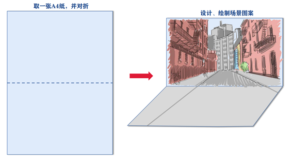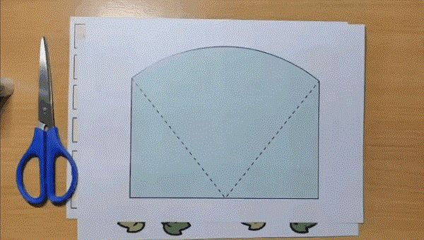 “大白”的形象有了,如何让孩子们更了解“大白”所肩负的防疫职责,体悟他们的辛劳?90后英语老师王乐云平日里负责蓬莱小镇阿拉丁戏剧社团,她从戏剧表演舞台找到灵感——将卡纸一折二,竖起的那面让孩子们自己去发现并手绘“大白”工作场景, 再将Q版“大白”素材剪下来,贴在立体支撑上,制作一个专属“大白”微缩世界,好玩又暖心!