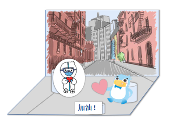 这两天,在黄浦区蓬莱路第二小学师生和家长的朋友圈里,一套以校园吉祥物、小企鹅“蓬蓬”“莱莱”为原型创造的表情包火了。和以往不同的是,这一回,“蓬蓬”“莱莱”穿上了防护服,化身“大白”,一年级小朋友们则发挥想象,给每一个卡通图像配上了简短的文字说明。
