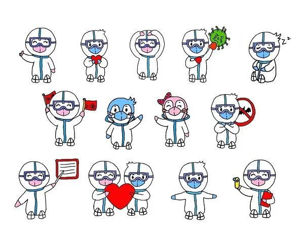 90后美术老师冯颖是个心灵手巧的姑娘。或是手举测温枪,或者累得席地而睡,或是乐观比心……由14个图案组成的卡通“大白”表情包很快在小冯老师笔下诞生。四(6)班姚皓阳爸爸和五(7)班陶昕泽妈妈已经在社区连续忙碌多日,工作间歇,他们受邀成为“大白蓬蓬”和“大白莱莱”的真人版形象代言人。
