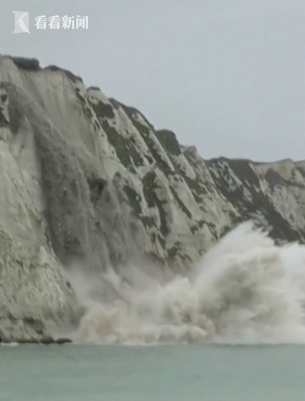 视频|英国著名景点白崖塌方 数吨岩石坠入英吉利海峡