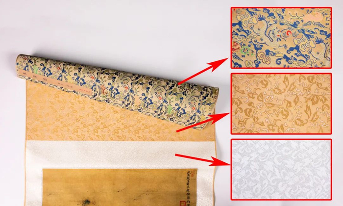 装裱材料为优质锦绫,花纹精美繁复,大气华贵。