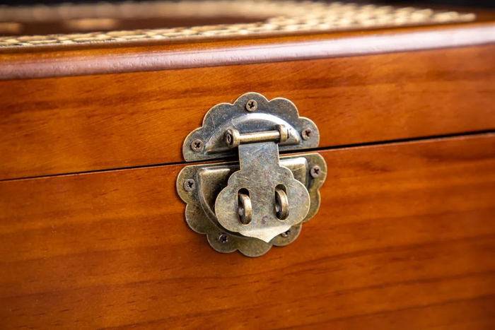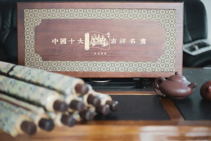 “中国十大吉祥名画”还配备礼盒包装。礼盒为樟木制作的实木箱体,樟木还可以防虫蛀,很适合藏画。