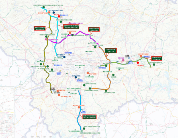 其中,张村至六景公路拟建工程起于邕宁区张村互通出口西北侧,路线自西至东终于横县良圻农场附近。沿线主要涉及伶俐工业集中区、六景工业园、牛湾港物流园、伶俐物流中心、六景物流园区等产业园及物流园区,项目功能定位为连接产业园区、南宁港、伶俐物流中心的物流通道。