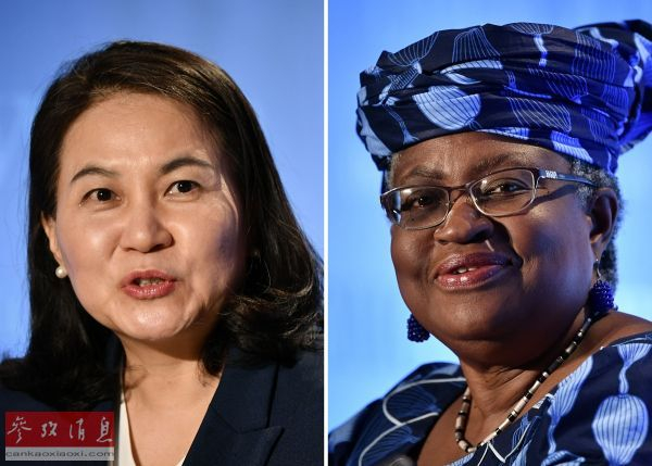 资料图片:俞明希(左)和恩戈齐·奥孔乔-伊韦阿拉将竞争世贸组织总干事职位。(法新社)