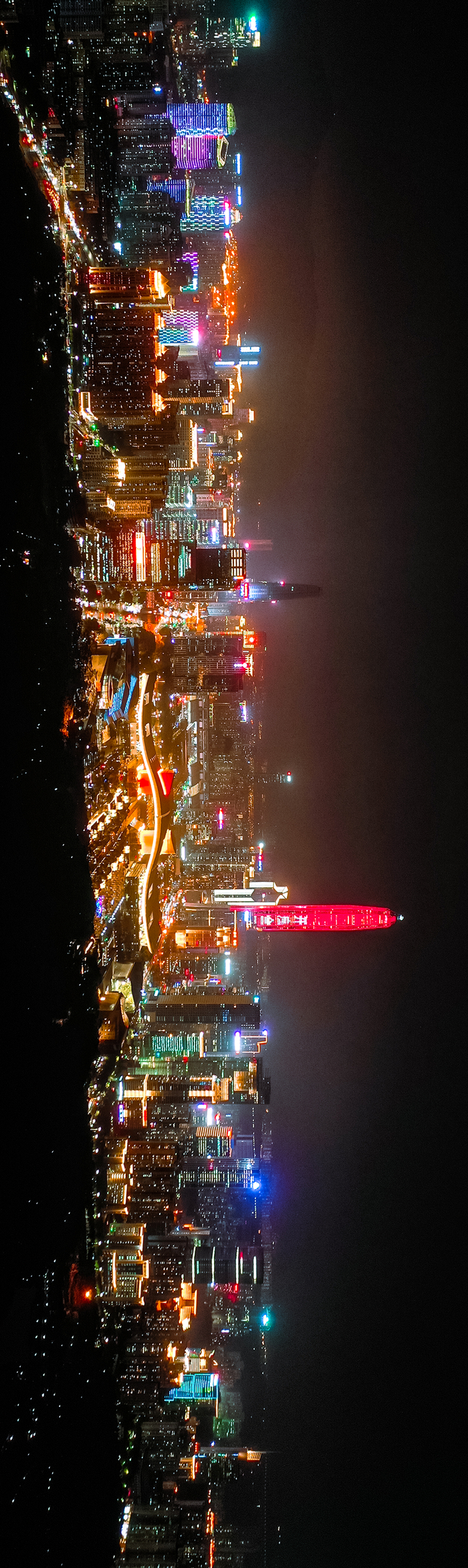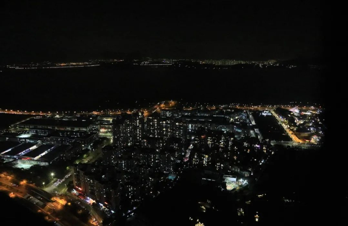 夜色中的深圳湾上空,深港两地灯火璀璨。