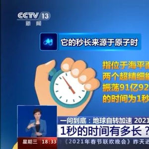 中国科学院国家授时中心 刘次沅:我们使用的协调世界时这样一个时间,就要通过闰秒的方法来进行调整,就是说我们的秒的单位是没有问题是固定不变的,但是我们这个日呢,有时候就得要修修补补,那么国际科学界就已经做出决定,就是说,如果地球转的越来越慢,中间就要补秒,如果转得太快,那就要减秒。