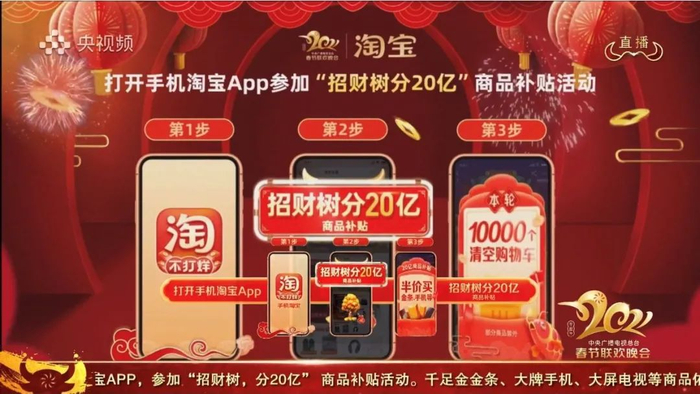 作为2021年央视春晚独家电商合作伙伴,淘宝在除夕这一晚再度用抽奖开红包的方式清空了40000个购物车,直接替不少人实现了牛年的第一个新年愿望。