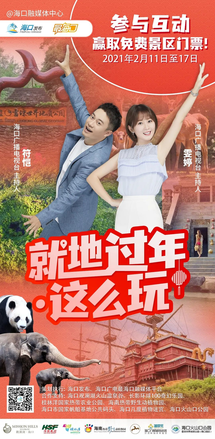 由海口发布、海口广电最海口融媒策划执行的《就地过年·这么玩》特别活动已上线。符恺和雯婷将带着市民游客开启“趣玩”模式,探寻海口各景区(点)节庆活动,和谐欢度“我们的节日·春节”。福利多多,记得关注我们哦!