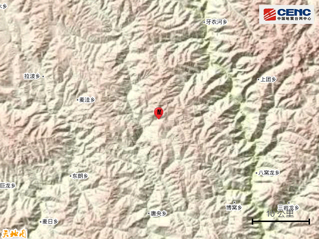 震中地形:震中5公里范围内平均海拔约4248米。