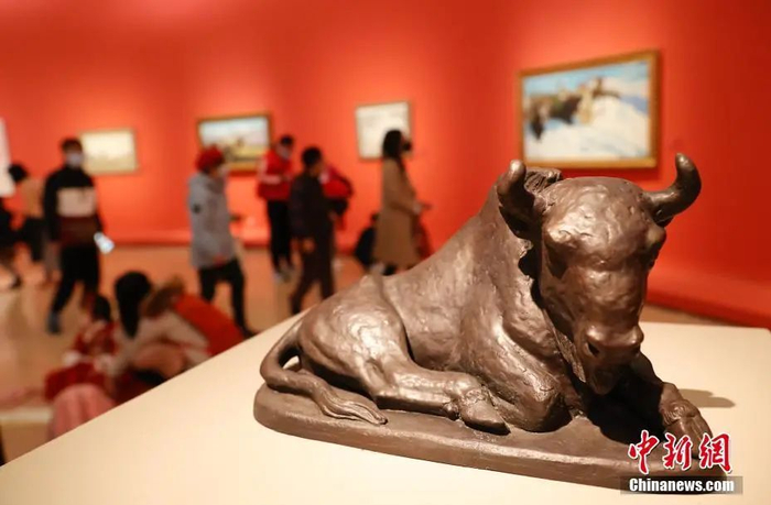 2月12日,大年初一,中国美术馆里年味正浓。正在这里展出的“美在耕耘”新年大展迎来了牛年首批观众。中新社记者 杜洋 摄