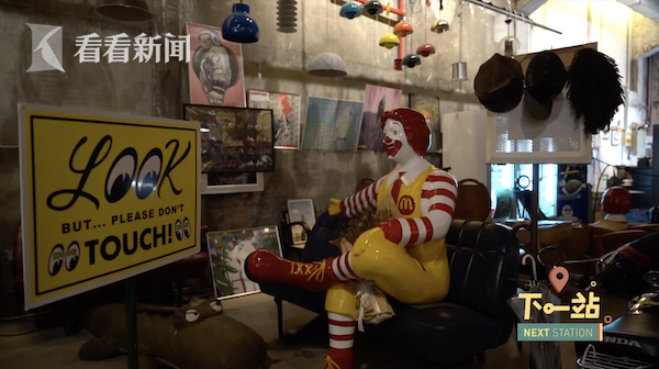 就比如店里的“网红”麦当劳叔叔,它来自自厦门麦当劳的库存,虽然不是什么设计名品,但是它自带童年滤镜,总是能让看到它的人会心一笑,忍不住打卡合影。