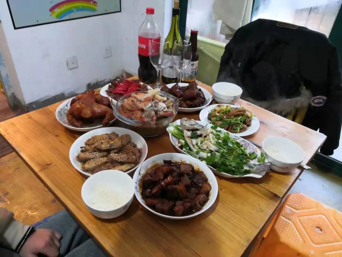除夕妻子烹制的年夜饭