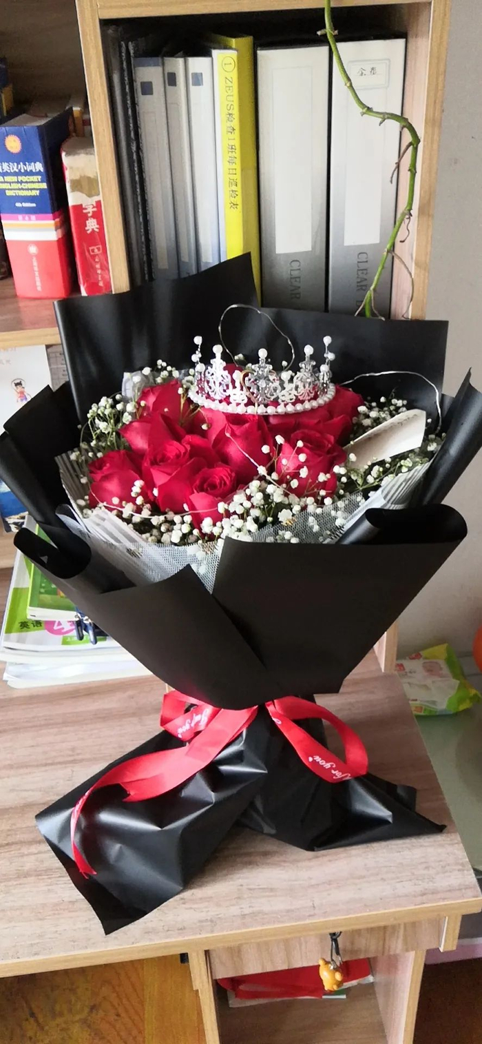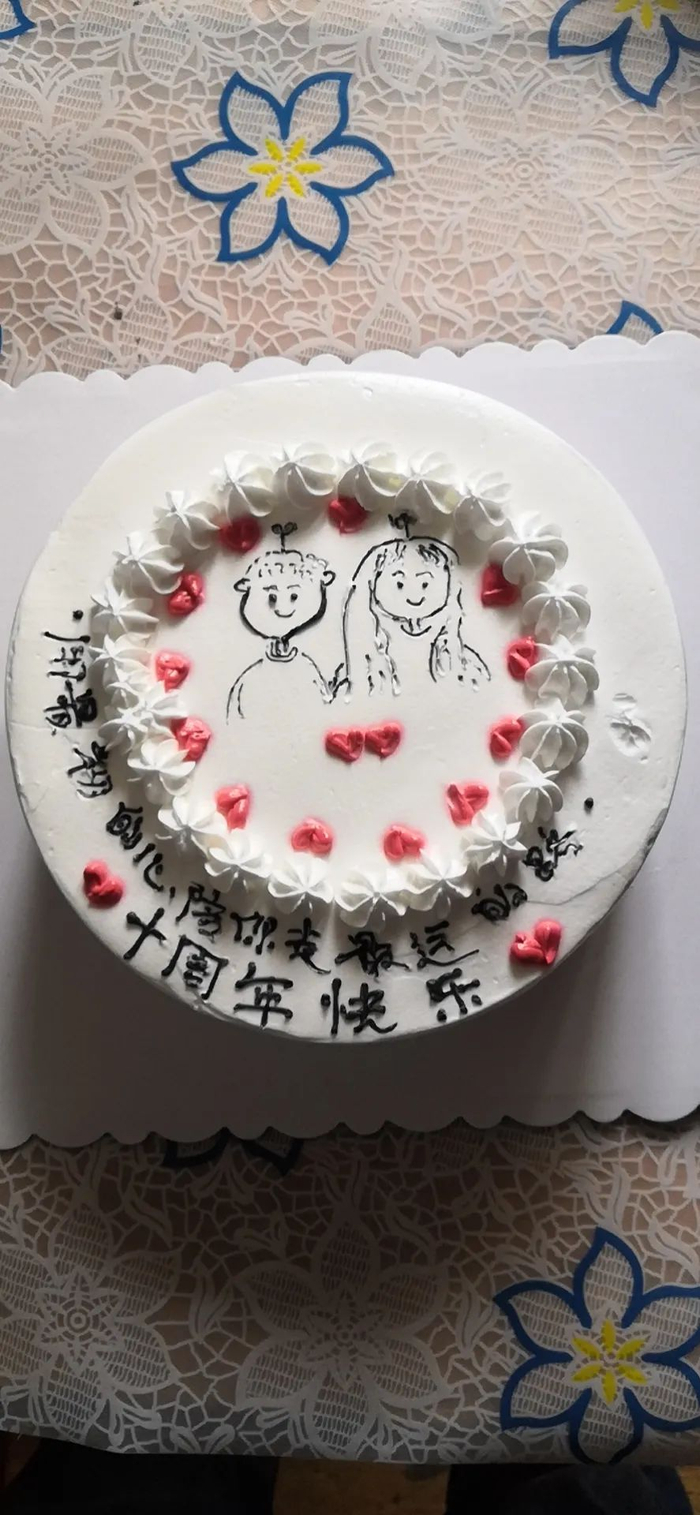 今天上午,11朵红玫瑰和一个网红蛋糕被送到了新高苑一期门口,丈夫余满意取回后,在家里举行了一个小小的浪漫仪式,将鲜花和蛋糕送到了妻子手中,旁边的小小“吃瓜群众”——10岁的儿子开心地欢呼起来。