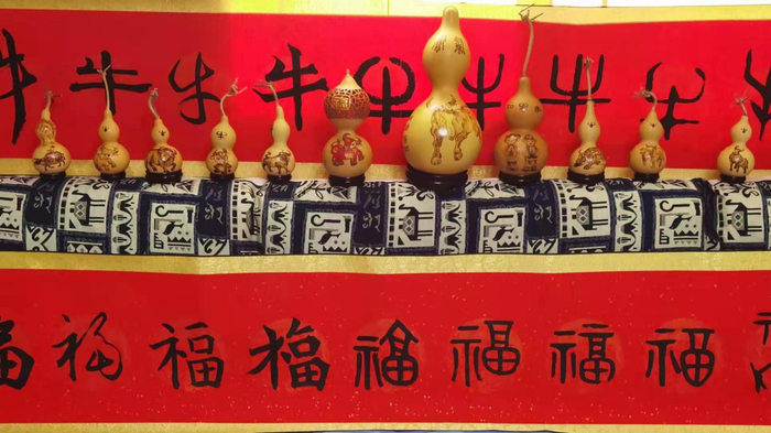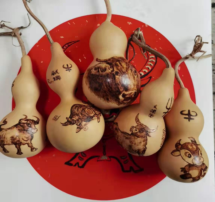 2020年底,关中葫芦制作技艺入选西安市第六批非物质文化遗产项目。在辛丑牛年新春之际,在葫芦上画牛,刻画牛踏实肯干、开拓进取、吃苦耐劳的精神,寄托了关中葫芦代表性传承人梁平安对大家的新春祝福。
