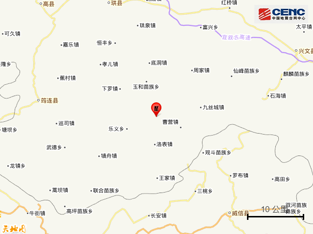 震中简介:珙县隶属于四川省宜宾市,南与大雪山相连,与云南省威信县隔山相望。地势南高北低,以中低山地为主,气候温暖湿润。珙县是四川省重要的能源、建材、化工基地。该县面积1145公里,下辖6乡11镇,2014年人口约37万,2014年GDP达115亿元。