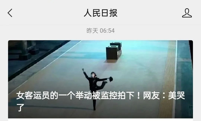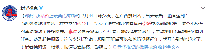 在空空的站台上,结束了接车作业的客运员李媛突然翩翩起舞,这个不经意的举动感动了许多网民。